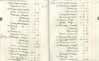 A page from a petty cash book used at the Paddington branch of a predecessor to Midland Bank documents purchases of envelopes, tea and pins in the summer of 1897.