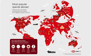 The research was commissioned by HSBC UK and Global Money data from the bank shows customers have been spending the most money on online purchases from the USA in the twelve months since it launched, followed by Spain, France and the UAE.