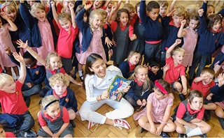Emma Raducanu reads Fairer Tales to Year 1 pupils at a school in London